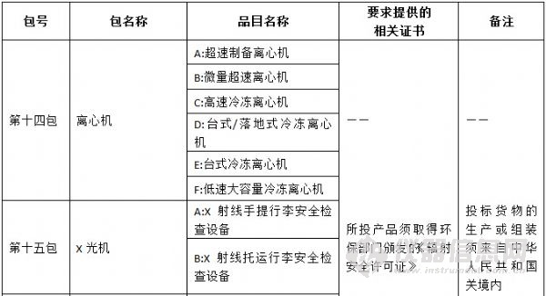 2015年4月22日,中机国际招标公司就“国家质检总局2015年专用仪器设备采购项目”招标公告,此次招标仪器种类涉及气相、液相、气质、离子色谱、凝胶色谱、PCR、全自动生化系统等30大类、113个品目。 质检总局专用仪器设备采购项目始于2006年,每年集中招标采购一次,由此产生当年的协议供货商,即入围产品。在当年有效期内,质检总局所属各单位采购仪器必须在协议供货商范围内选择,而且采购价格不得高于协议中标价格。 2015年招标详情如下所示: 采购人名称:国家质检总局 采购人地址:北京市海淀区马甸东路9号 采购人联系方式:010-82262074 采购代理机构名称:中国通用咨询投资有限公司中机国际招标公司 采购代理机构地址:北京市丰台区西三环中路90号通用技术大厦 采购代理机构联系方式:010-63348490 010-63348489 采购用途:质量监督检验检疫 简要技术要求:符合质量监督检验检疫的业务需求 招标项目的性质:政府采购 0702-1541CITC5M01