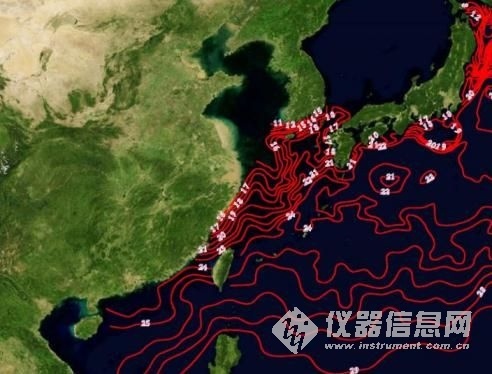 图 4 水污染空间分布图 基于水污染空间分布图,可定性与定量评价水污染程度、污染面积及主要分布区域。 海洋环境监测 通过对遥感信息的分析、仿真和模拟, 可以获得影响海洋理化和生物过程, 如海冰运动、海流循环模式、海表面等温线分布、叶绿素浓度等相关参数。在现代海洋渔业中, 遥感已成为渔情分析和预报的重要技术手段之一。在海洋污染监测方面,卫星遥感可实现对海洋大范围、全天候的污染监测,有很高的实用价值。 利用海洋遥感产品制作中国近海等温线分布,分布如下。