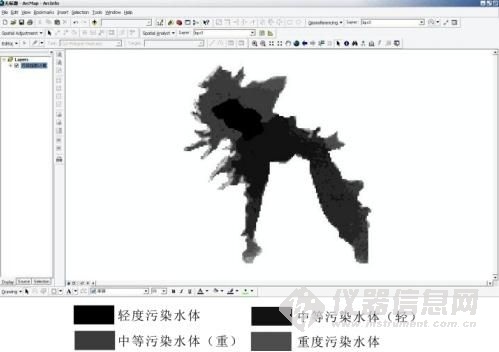 图 2 研究区湖泊污染监测 利用计算机自动分类与人机交互式解译方式获取土地利用数据,进而提取湖泊水体信息。