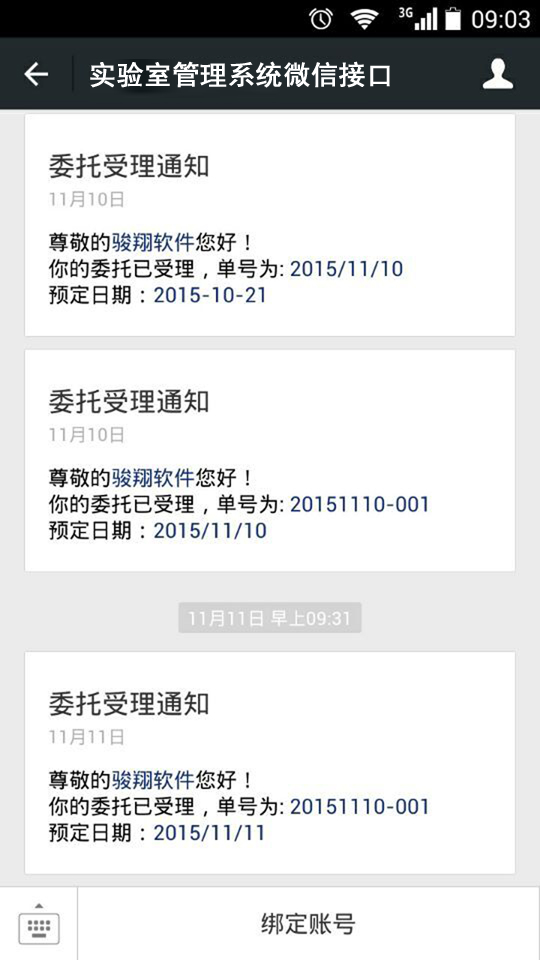 3、客户可以通过微信端随时随地查询委托单的状况,查询检测样品的进度。