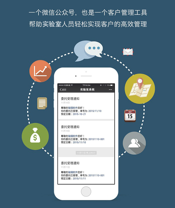 1、微信功能是本系统为实验室与客户打造的专属功能,可以轻松发布实验室公告、办事指南等。