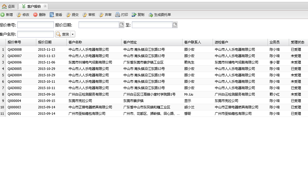 2、已审核报价单可直接生成委托单