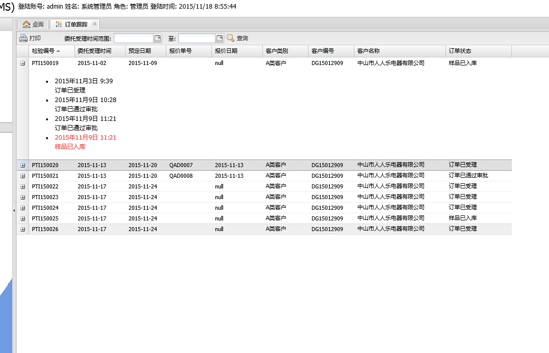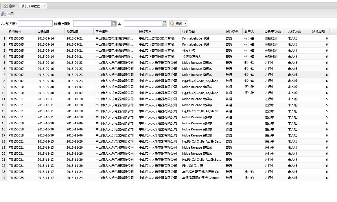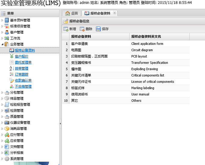 由客户报价、委托受理单、排单管理、订单跟踪、收款确认单等功能模块组成。 从客户报价、委托单处理、订单跟踪、不合格管理、收款确认一系列环节进行全方面跟踪.报价单审核生成委托单,审核通过后自动进入检测环节.最后根据订单编号生成收款单。随时查询历史报价,避免引起不必要的损失。支持短信收发或群发,邮件群发功能。