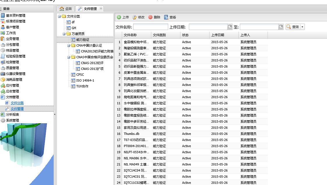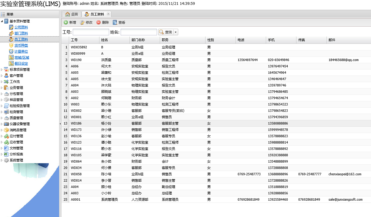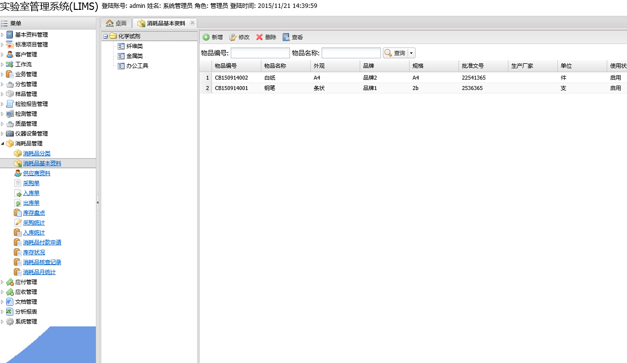 由消耗品管理、仪器设备管理、文件管理、分包商供应商管理、人力资源管理、检验报告管理、财务管理等功能模块组成.